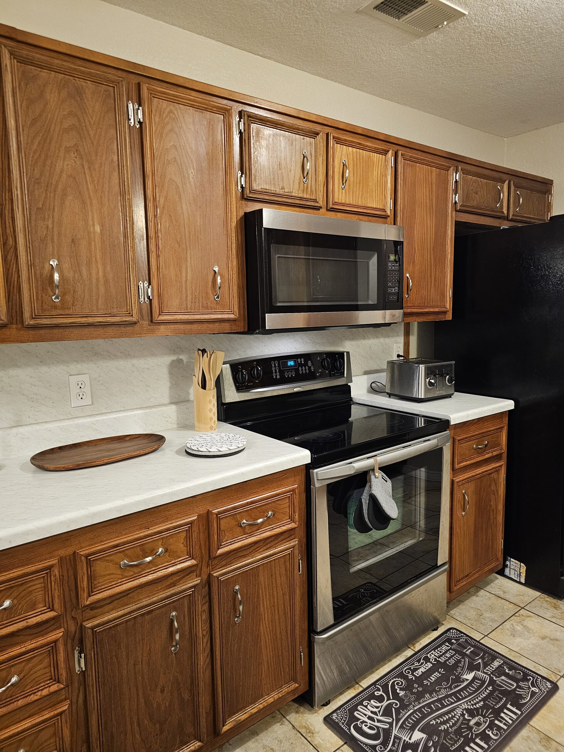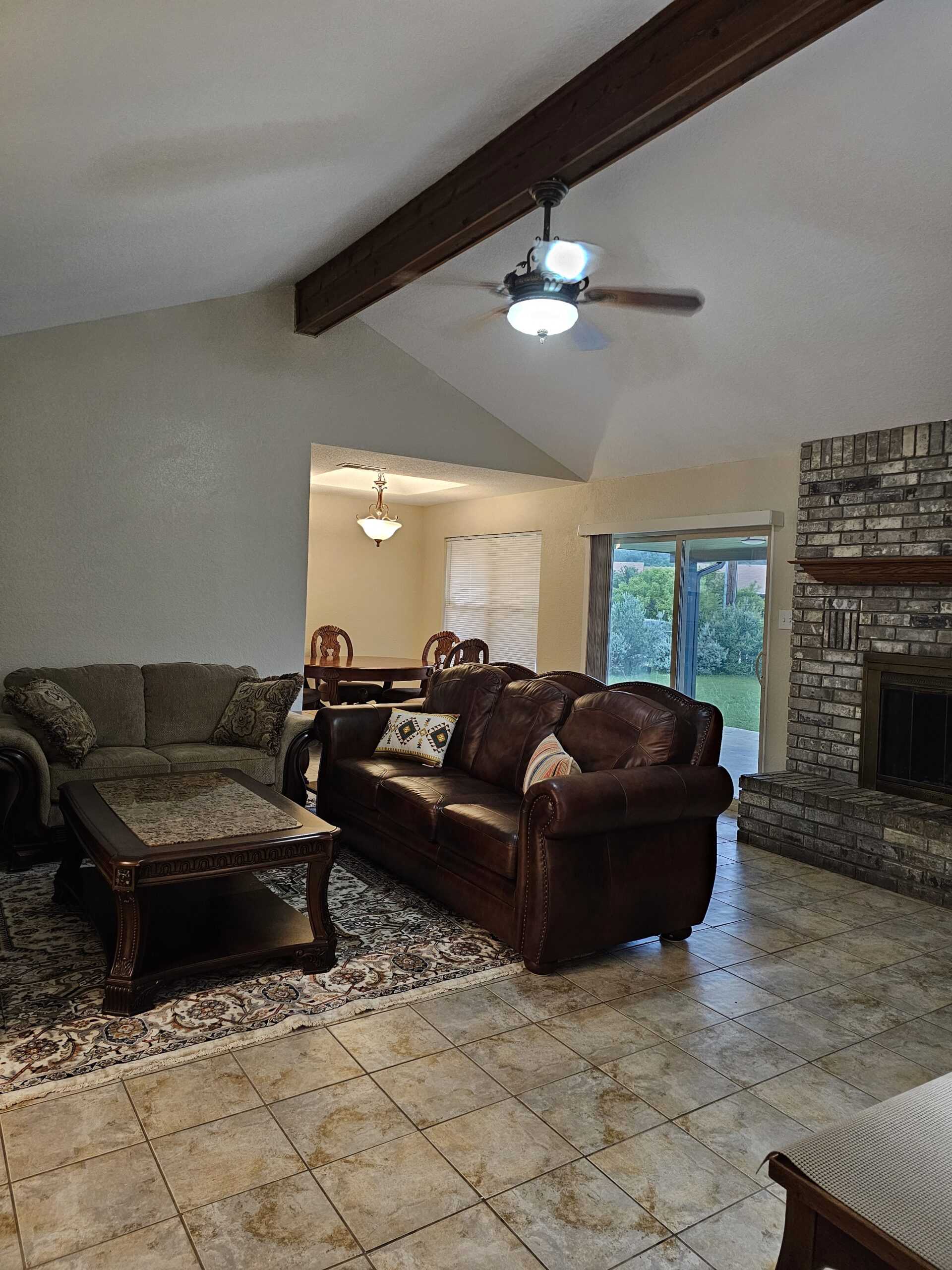 Step into comfort and convenience with this beautifully updated, fully furnished 3-bedroom, 2-bath home—perfect for anyone looking for a hassle-free move-in experience. Fresh paint, updated cabinets, and unified floor tile throughout give the home a clean, modern feel, while an attached two-car garage and spacious fenced backyard bring all the practical perks you need.
